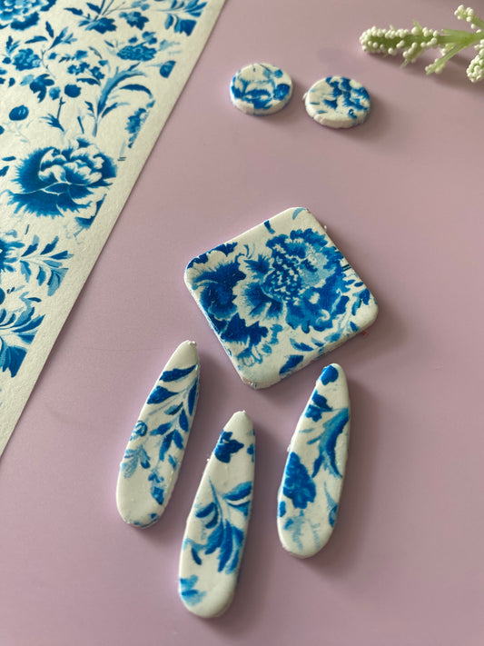 Blue Floral Vase - WATER DISSOLVING Clay Tattoo Sheet