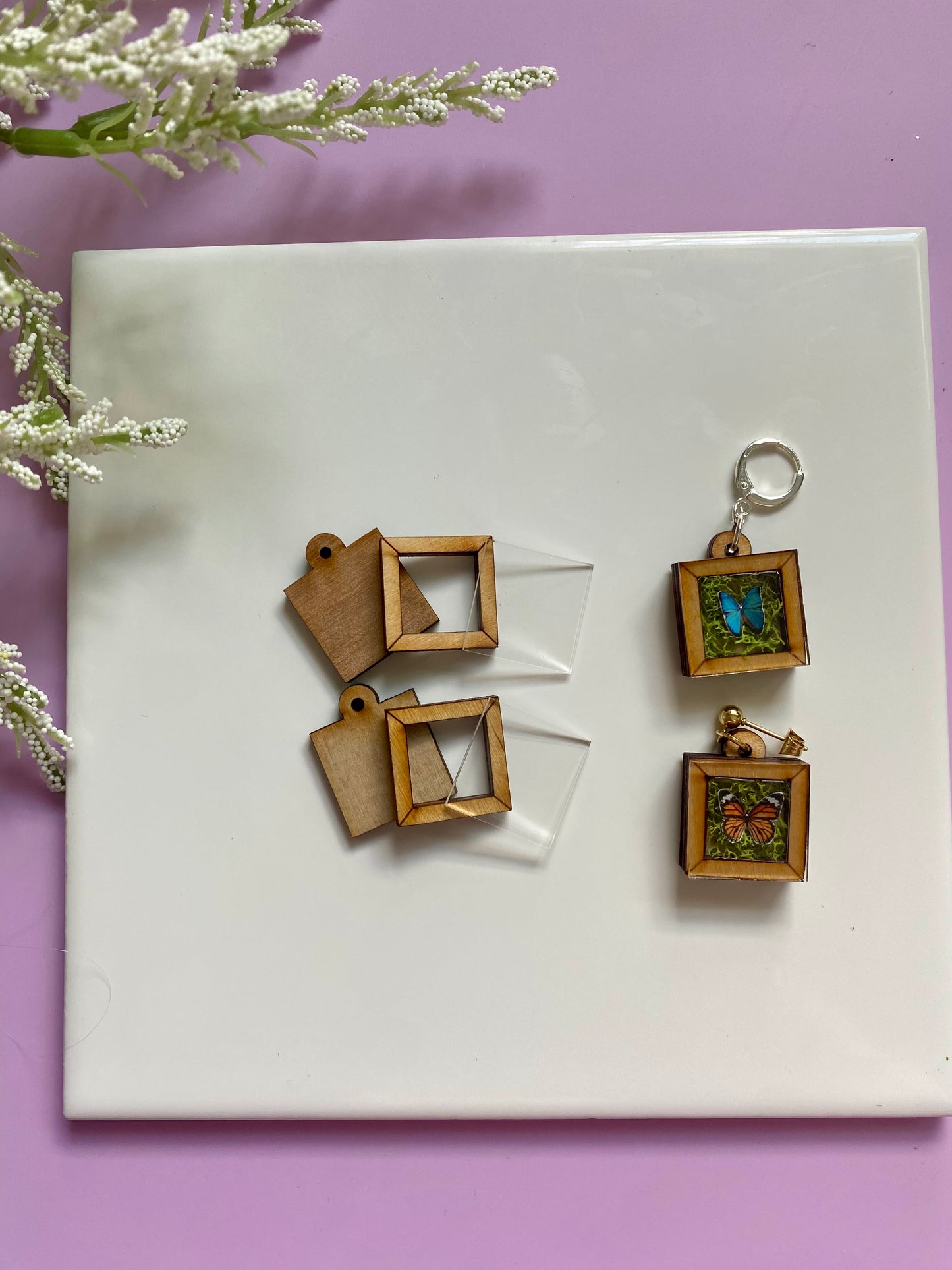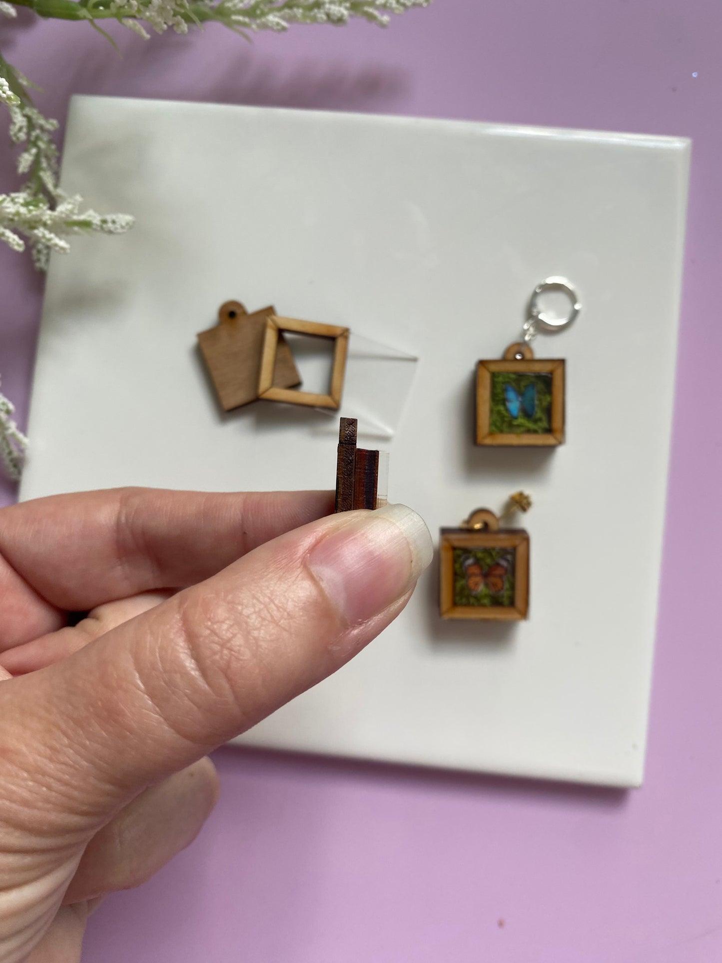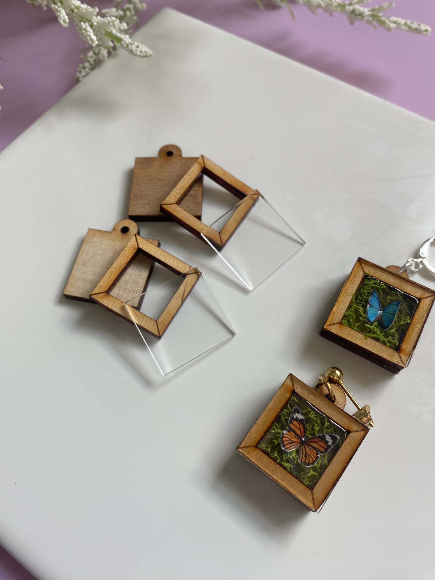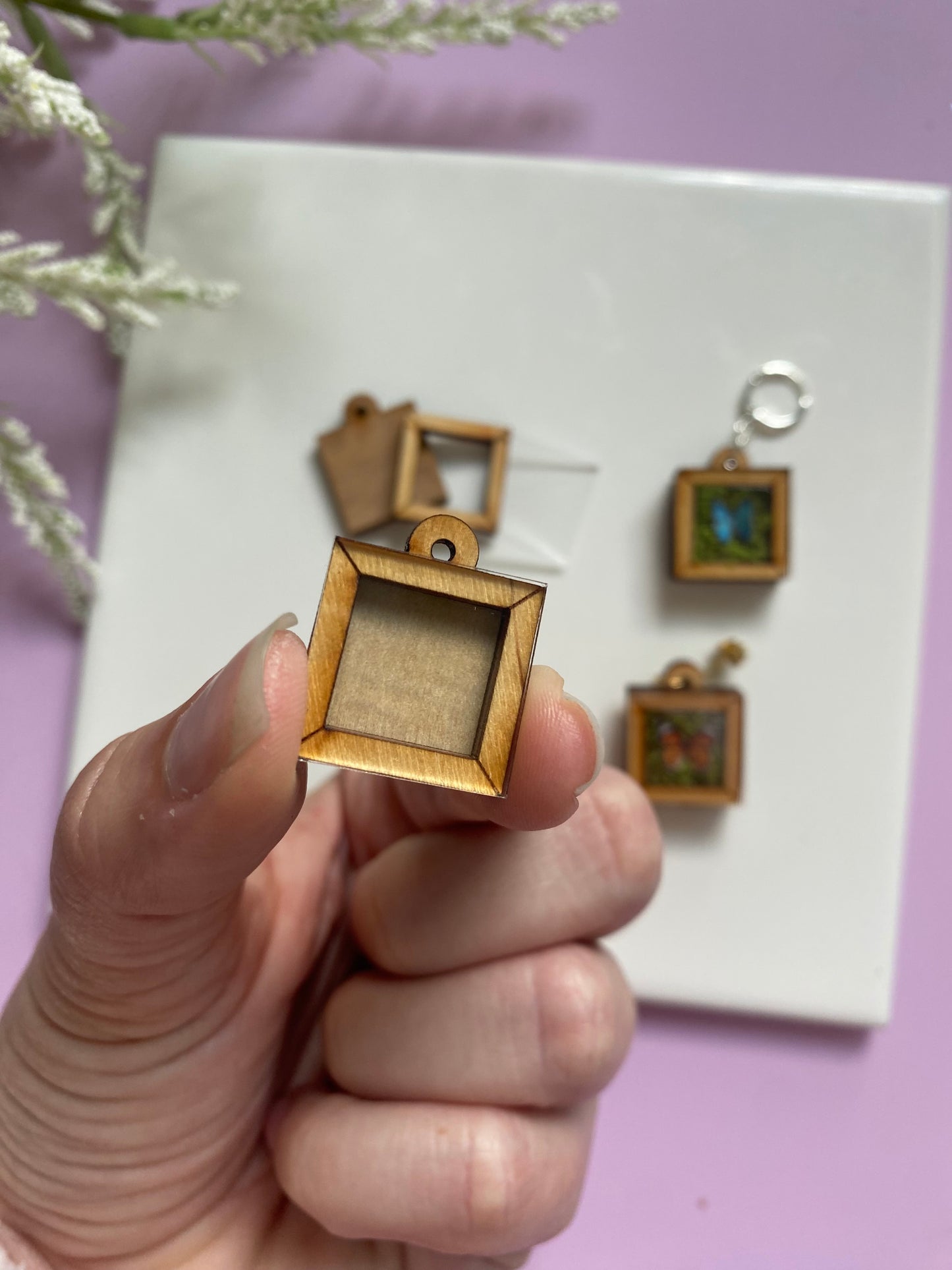 Add some quirk to your jewelry design with these Mini Taxidermy Frames! Made of laser cut wood with acrylic "glass", this mini frame ships in three pieces for you to assemble with your choice of glue or resin.